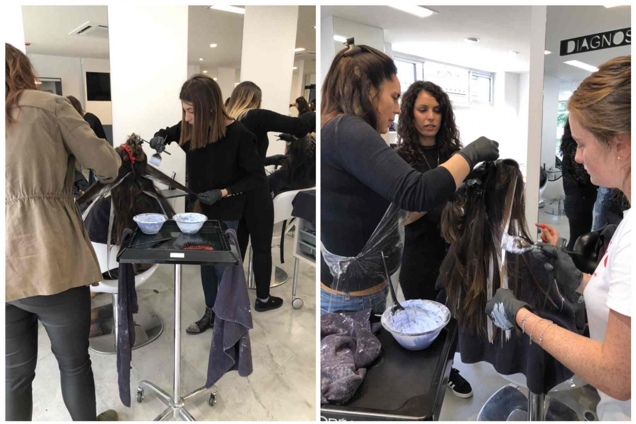 午前中が学科で商品説明だったり、ロレアルでメインのカラー剤のマジレールとの比較だったり等で午後からモデルさんでの実技でした。